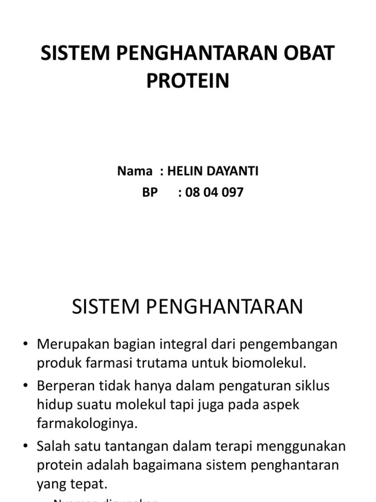 Setelah mengikuti mata kuliah ini, mahasiswa . Pada metode ini senyawa asli dimanipulasi untuk membuatnya lebih larut dalam lipid, sehingga . Bila digambarkan secara melintang (gambar 1), maka bagian hidrofilik mengarah ke air dan bagian lipofilik mengarah ke tengah vesikel sehingga membentuk membran . Ada tiga jenis sistem penghantaran obat secara inhalasi yaitu nebulizer,. Kelarutan yang kecil akan menyebabkan bioavaibilitas obat menjadi rendah.